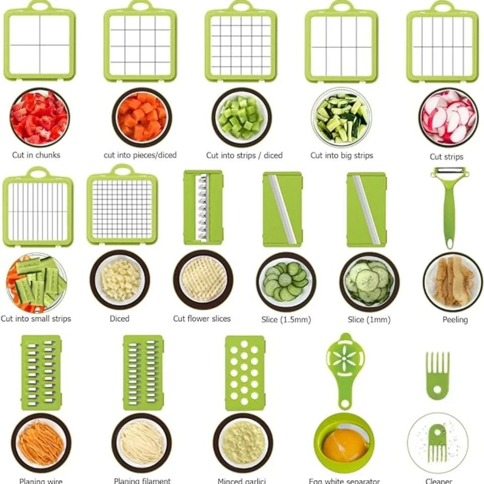 قطاعة خضروات وفواكه متعددة الوظائف – 22 قطعة مع صندوق تخزين