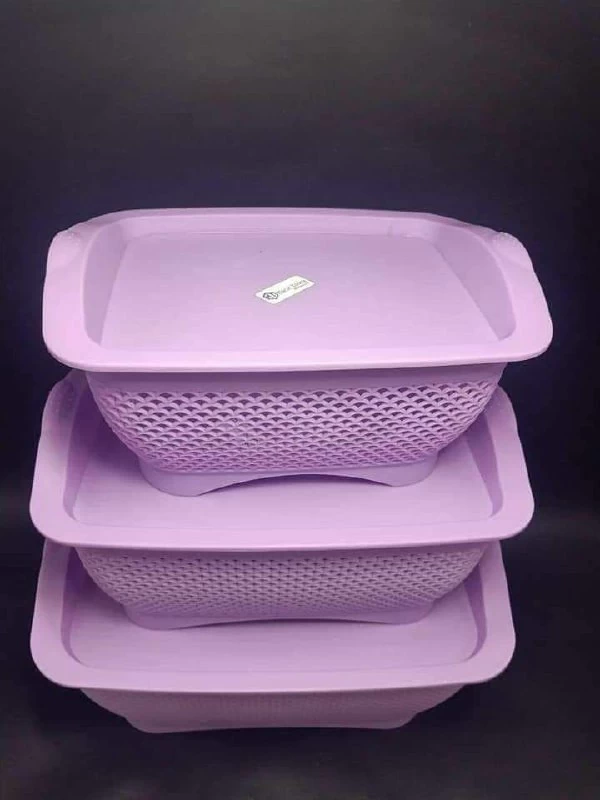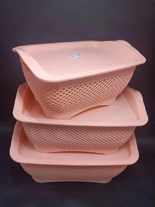 مجموعة تخزين بلاستيك 3 قطع بغطاء – متعددة الاستخدامات