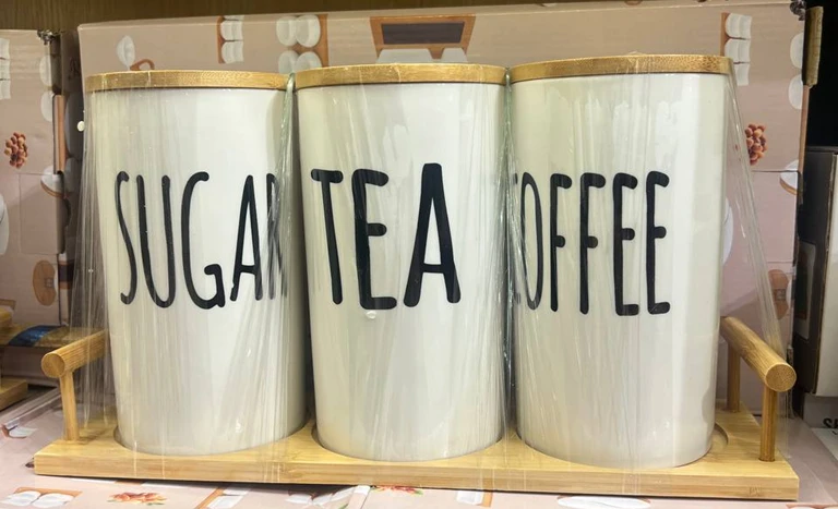 طقم أنيق مكون من 3 بوارتمانات توابل من البورسلين مع استاند خشبي قوي. مصمم لحفظ التوابل الأساسية مثل الملح والفلفل والأعشاب، ويضفي لمسة عملية وزخرفية على المطبخ. تصميمه البسيط والراقي يتماشى مع مختلف أنماط الديكور.