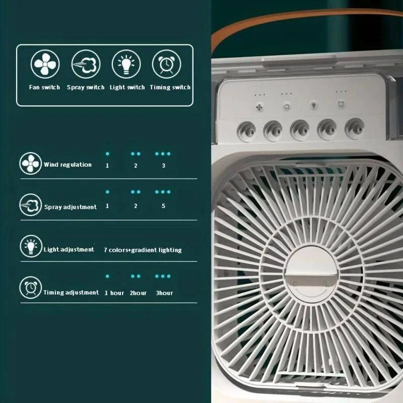 مكيف صحراوي محمول 5 في 1 – مرطب هواء ومروحة ورذاذ – سعة 600 مل