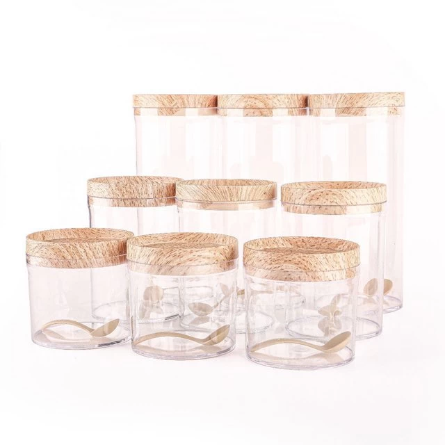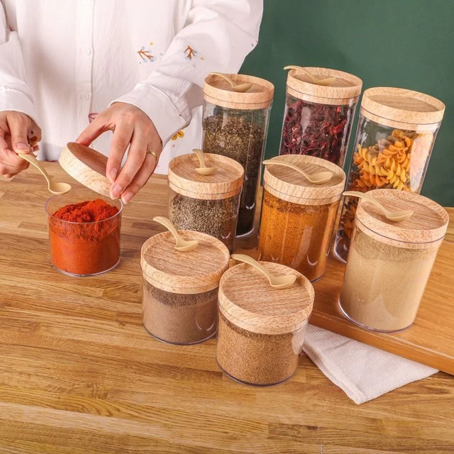 طقم توابل اكريليك بالغطاء خشب، 9 قطع - شفاف