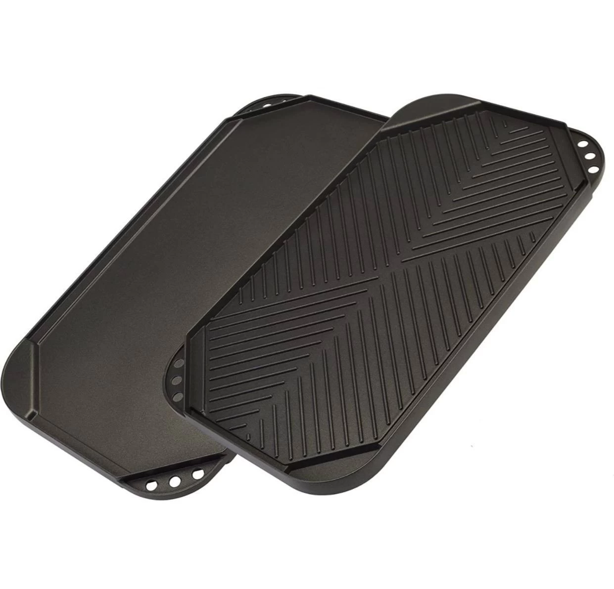 • سهل التنظيف على عكس الشوايات / المقالي المصنوعة من الحديد الزهر ، فإن هذه الشواية المصنوعة من الألمنيوم المصبوب والقابلة للانعكاس وصينية الشواية آمنة للغسل في غسالة الصحون ، مما يتيح لك توفير الوقت في التنظيف في المطبخ بين الاستخدامات.