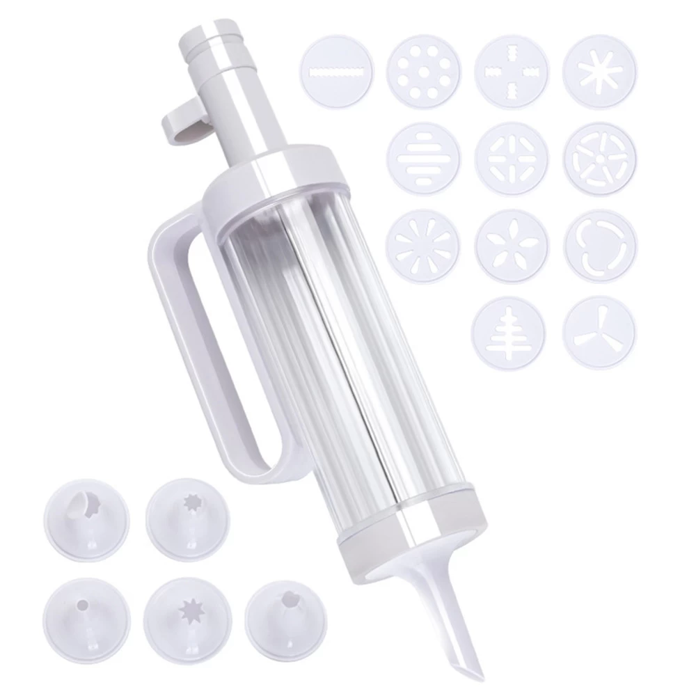 • مكبس البسكويت البلاستيكي مع الأنبوبة الشفافة لعرض كمية العجين بسهولة لإعادة تعبئته.