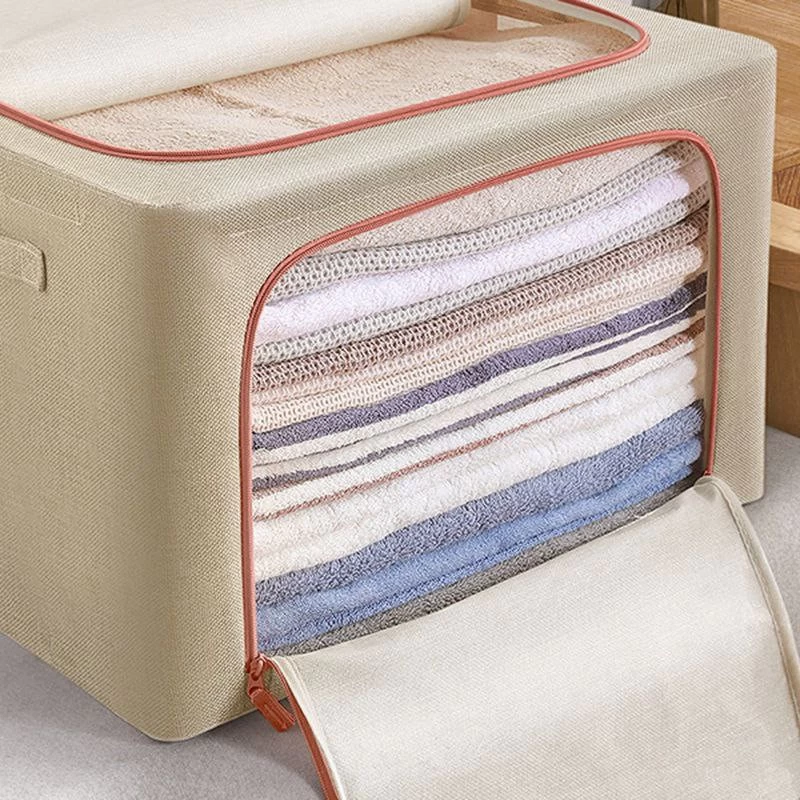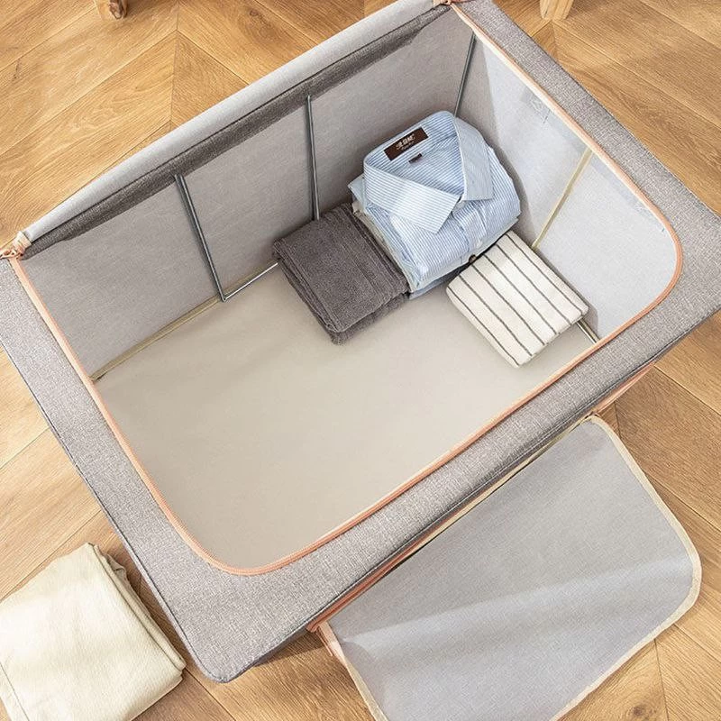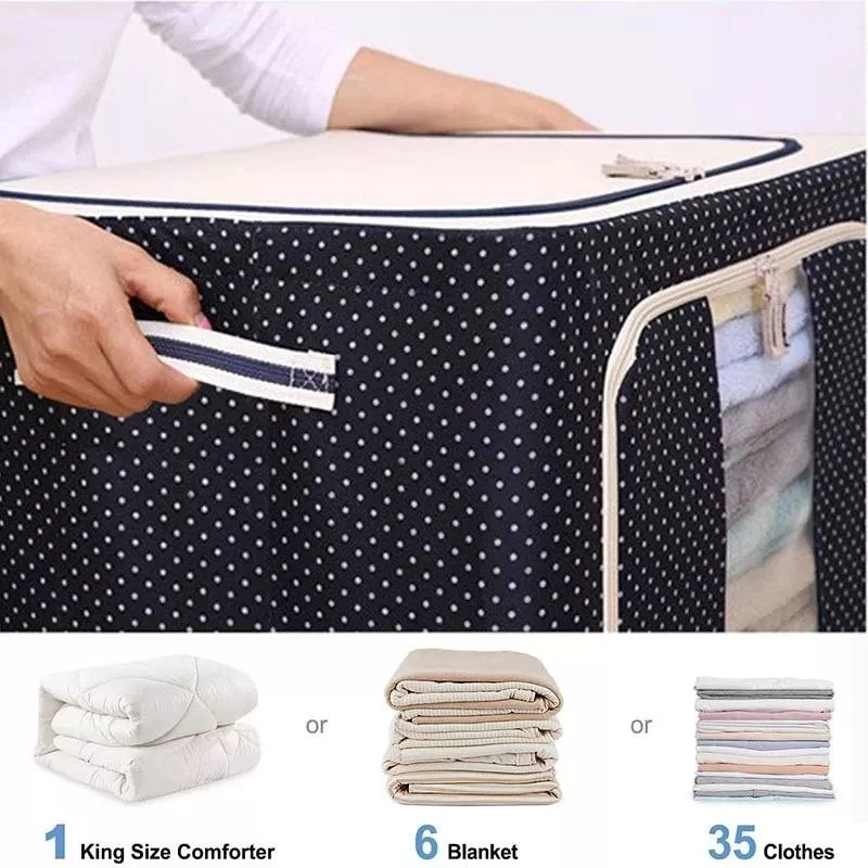 • الحقيبة مصنوعة من القماش بمظهر مبهج ، وتوفر حلول تخزين أنيقة لاحتياجات خزانة ملابسك. يدعم الإطار الفولاذي القماش ويحافظ على ثبات الحقيبة.