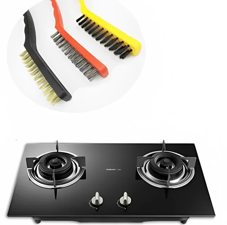 طقم فرشاة تنظيف بوتاجاز بيد بلاستيك، 3 قطع، 22 سم - متعددة الالوان