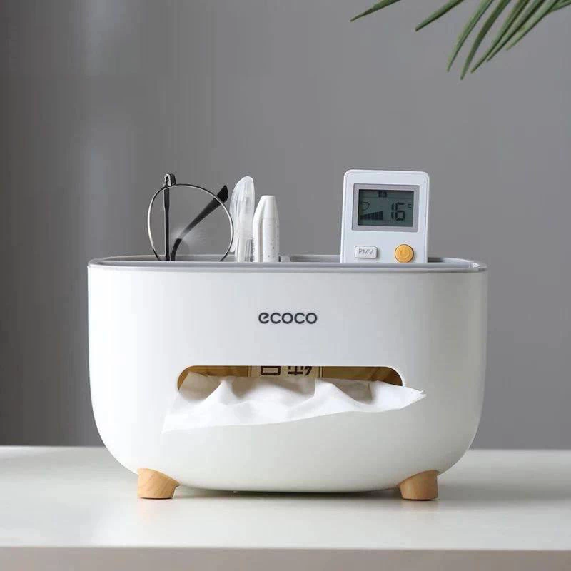 علبة مناديل سطح المكتب من ايكوكو - أبيض و رمادى