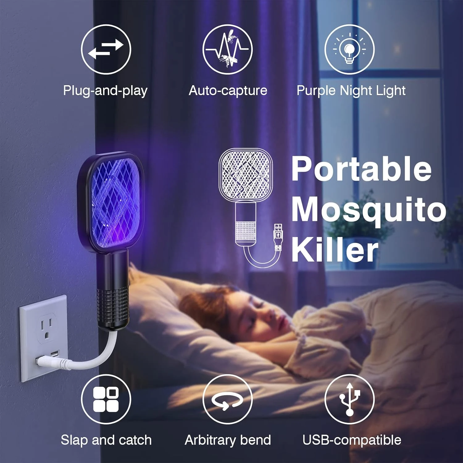 الحشرات الطائرة مثل البعوض والذباب، مما يجعله مثاليًا للاستخدام في غرف النوم