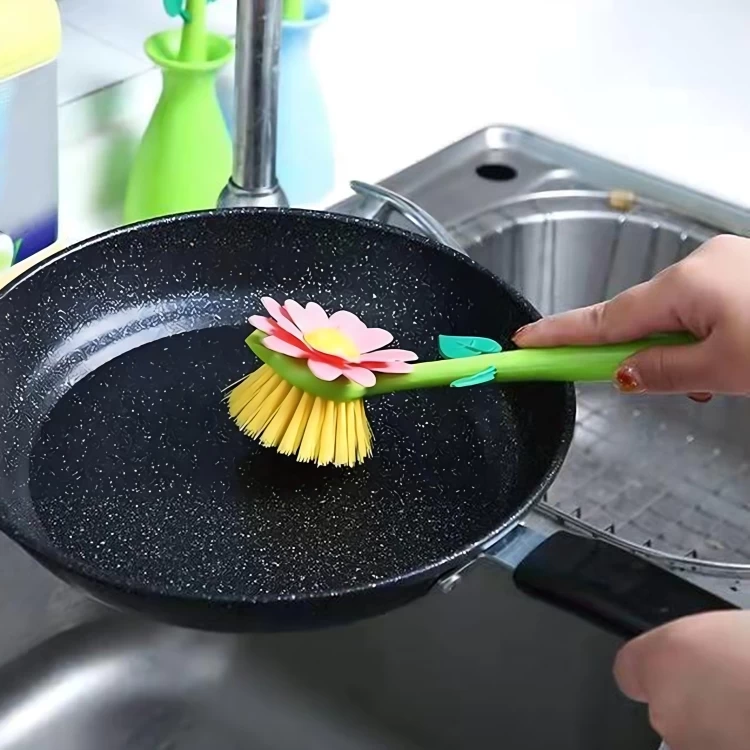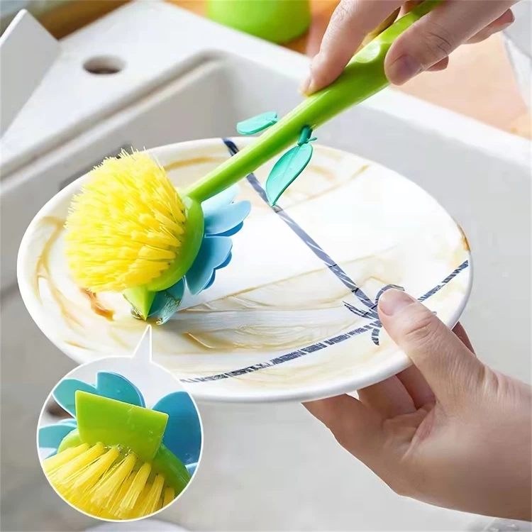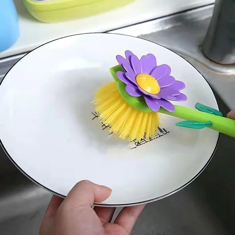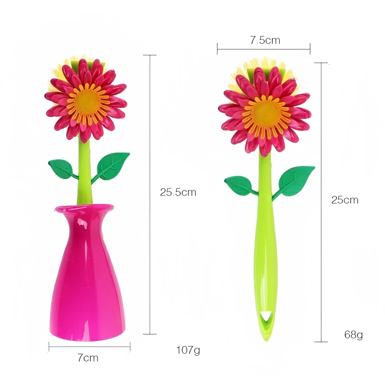 فرشاة تنظيف الأطباق البلاستيكية على شكل زهرة، 25×7 سم - متعددة الألوان