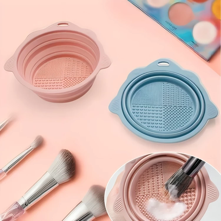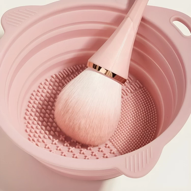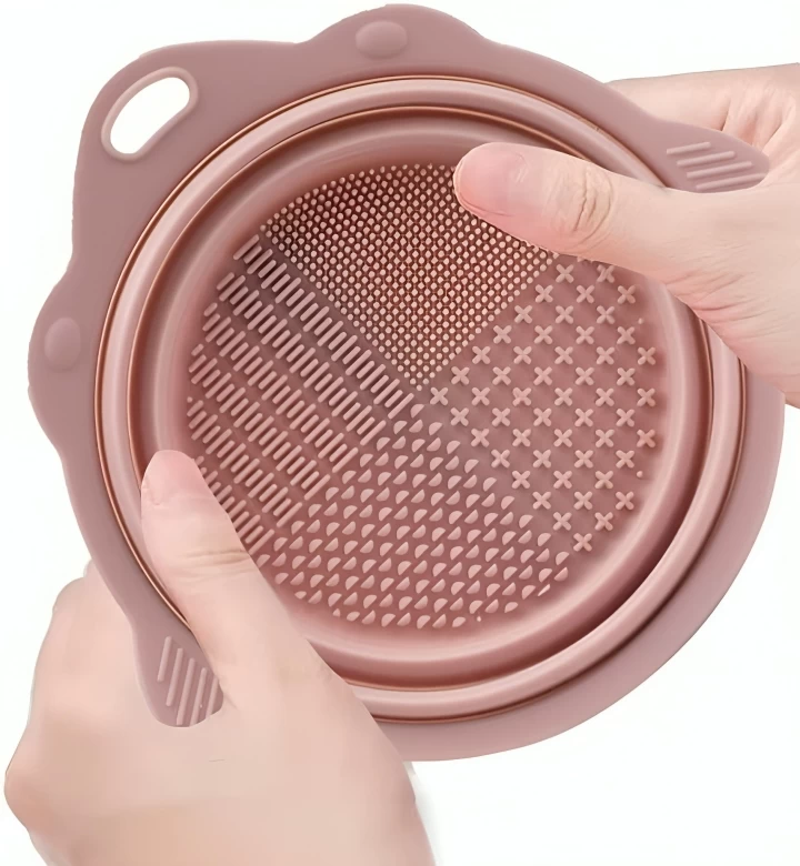 بولة تنظيف فرش المكياج قابل للطي، 14.5x14.2 سم - وردي