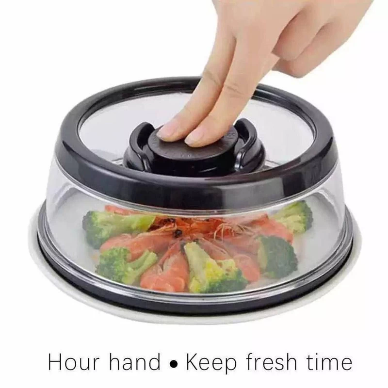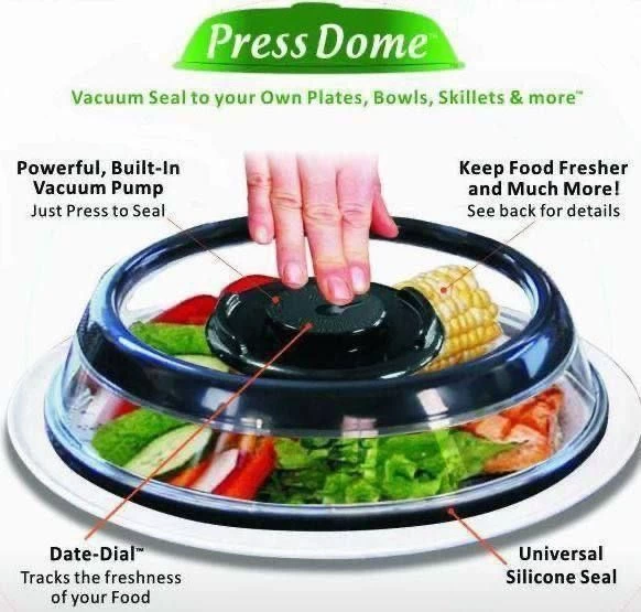 • فقط ضع الغطاء فوق طبق من الطعام واضغط قليلاً على القبة العلوية لتحرير كل الهواء وإنشاء ختم الشفط.