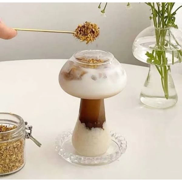 كوب عصير زجاجي على شكل فطر، 280 مل - شفاف