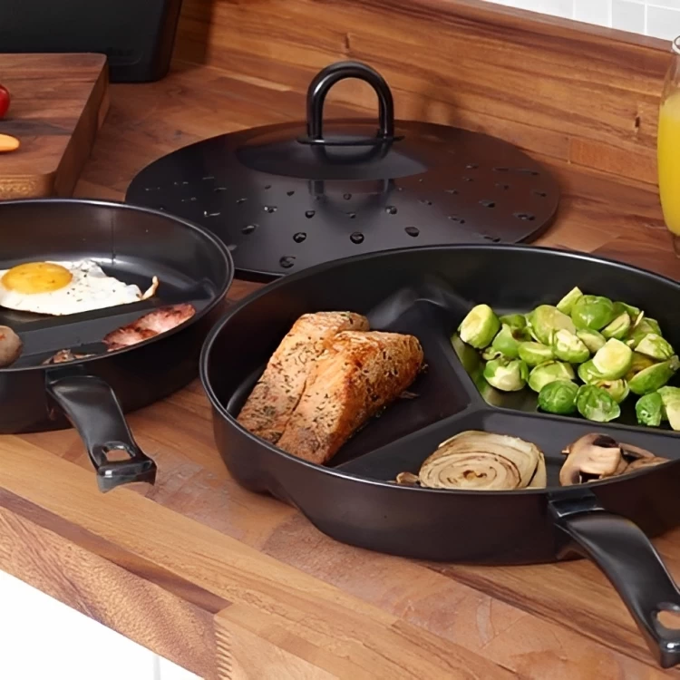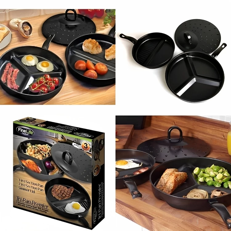 • قم بطهي 3 أطعمة مختلفة بشكل منفصل في مقلاة واحدة لتوفير وقتك.