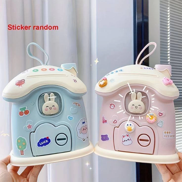 حصالة أطفال على شكل بيت مع ملصقات وألعاب - ممتعة وتعليمية