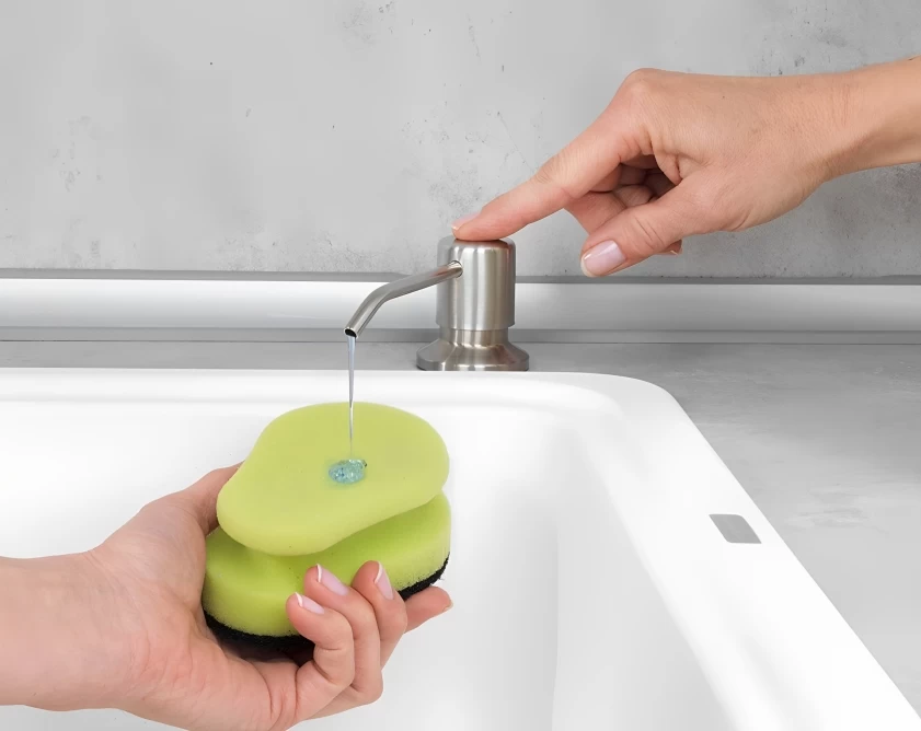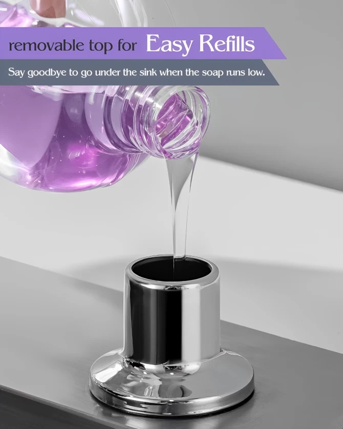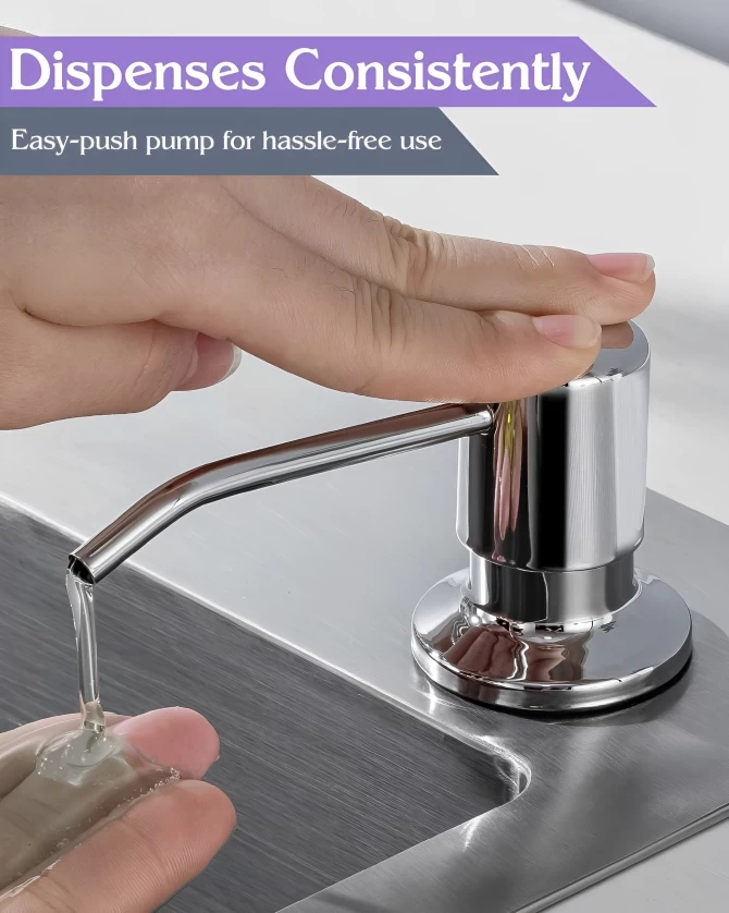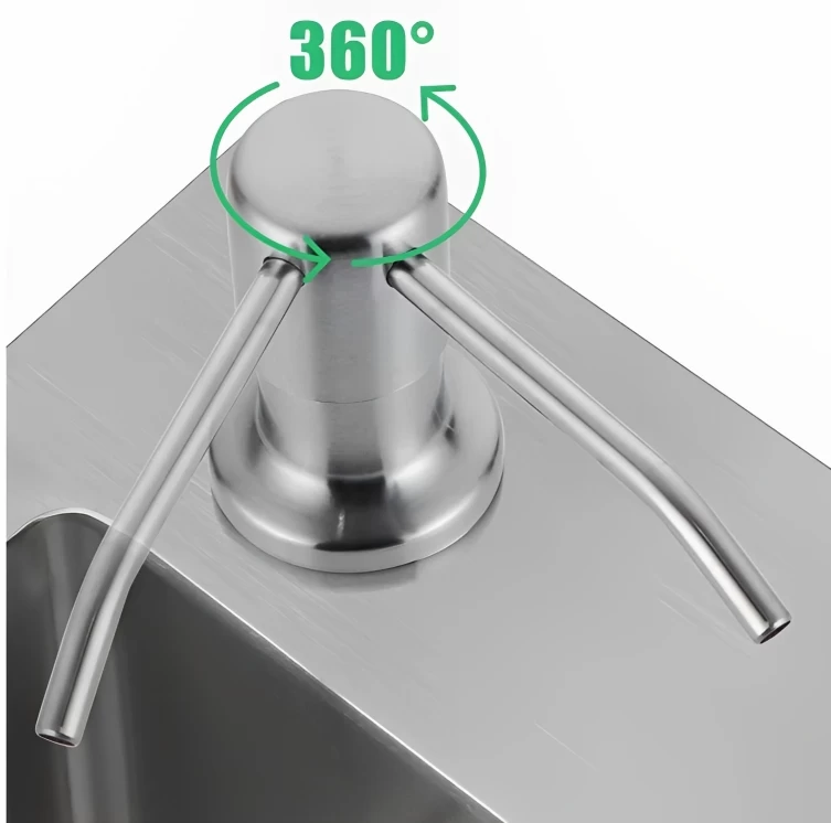 موزع صابون سائل لحوض المطبخ، يدور 360 درجة، 108 مم - فضي