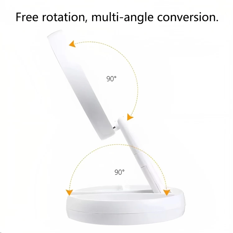 • تدعم مرآة الطاولة دوران 180 درجة للأمام أو للخلف ، ودوران 180 درجة من اليسار إلى اليمين أو من اليمين إلى اليسار ، ويمكن تدوير الذراع بمقدار 90 درجة ؛ اختاري الطول والزاوية التي تريدينها وفقًا لبيئتك لإتقان روتين مكياجك.
