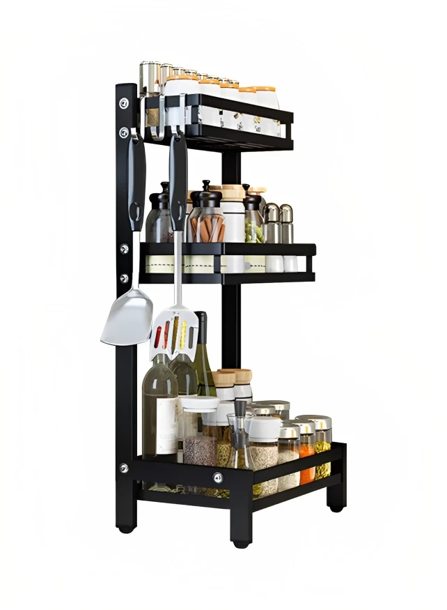 رف منظم توابل المعدن، 3 رفوف - اسود