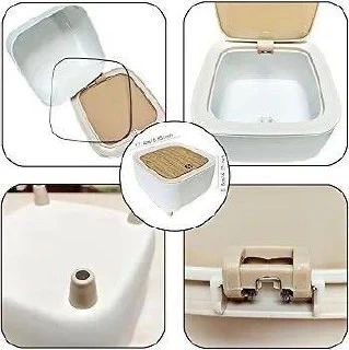 - التصميم: مربع مع غطاء محكم للحفاظ على النظافة