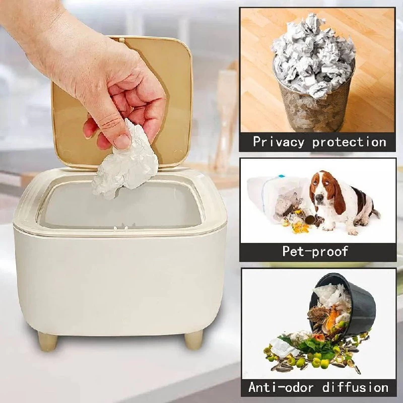 حافظ على نظافة وأناقة مساحتك مع سلة المهملات الصغيرة المربعة بأرجل خشبية وغطاء، المصممة للمكاتب، الطاولات الجانبية، والمساحات الصغيرة. يتميز بتصميم مربع عصري يجعله مناسبًا لديكورات المنزل الحديثة، بينما تضيف الأرجل الخشبية لمسة من الفخامة. كما أن الغطاء المحكم يساعد في الحفاظ على النظافة، مما يجعلها مثالية لغرف النوم، المكاتب، وطاولات التجميل.