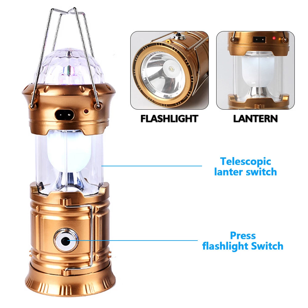• كشاف يدوي محمول للمنزل وفي المخيمات مجهز بفتحة يو اس بي لشحن اي جهاز قابل للشحن ومجهز ايضا باضاءة ال اي دي ذات الالوان الزاهية جدا التي تضيء السقف يعمل بالكهرباء والشحن.