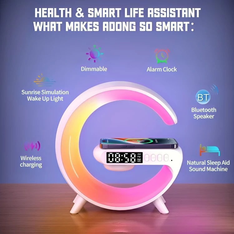 • 【مصباح ليلي متعدد الوظائف】مصباح الجو هذا: 9.25 (23.5 × 8 × 23.5 سم)، 5 وظائف: شاحن سريع 15 واط وشاحن لاسلكي، مكبر صوت بلوتوث، ضوء ليلي ملون بجانب السرير، ذكي رائع للإضاءة الليلية أثناء العمل والدراسة والقراءة والترفيه ومنبه