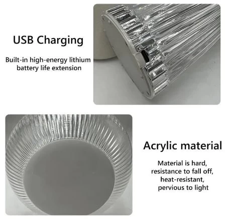 • مصنوع من مادة أكريليك عالية الجودة ، هذا المصباح مصمم ليدوم ويضيف لمسة من الرقي إلى أي مساحة. حجم مثالي لاستخدامه كإضاءة ليلية أو لإضافة أجواء إلى أي غرفة. تتضمن الحزمة كابل شحن USB لشحن سهل ومريح.