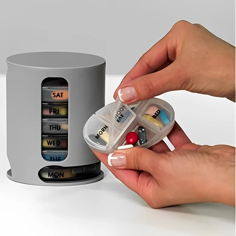 • ينظم الحبوب والأقراص والكبسولات والفيتامينات بالنهار والوقت من اليوم.
