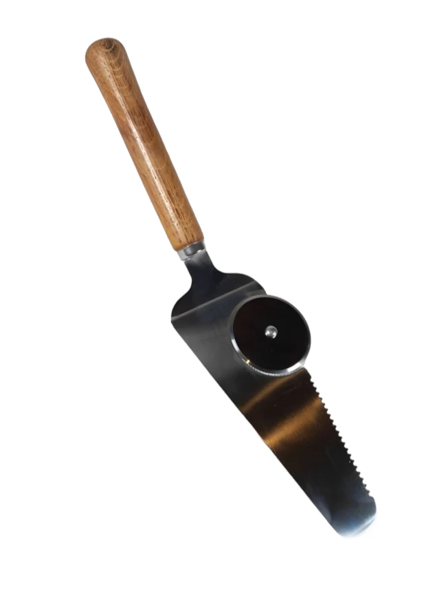 قطاعة بيتزا بيد خشبية، 29.5x11 سم - فضي