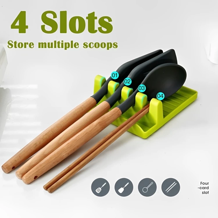 • أربع شقوق تحمل ما يصل إلى 4 ملاعق في وقت واحد.