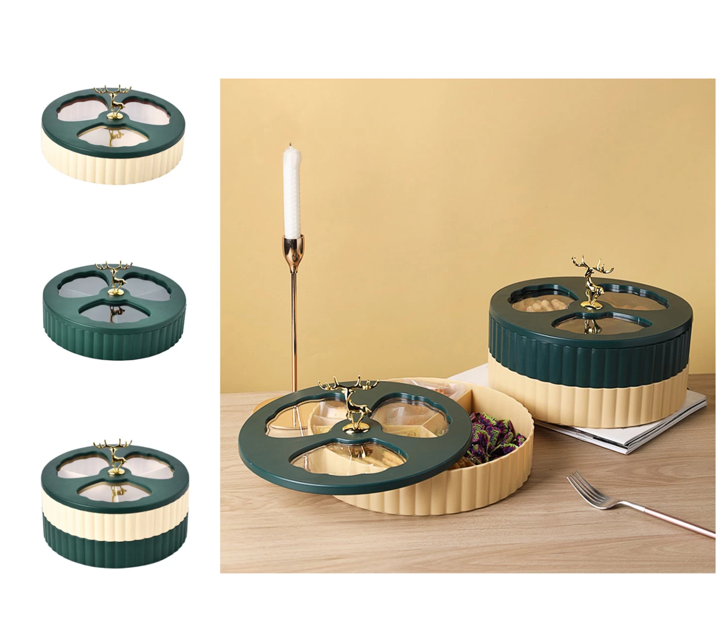طبق تسالى بلاستيك، 3 أقسام، 2 دور - أخضر