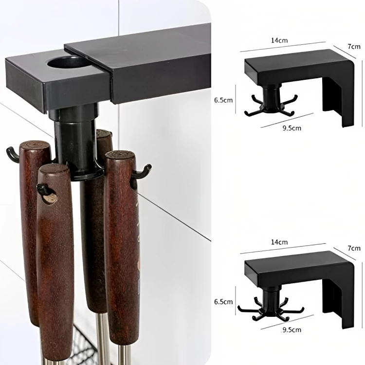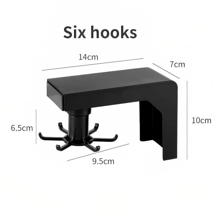 حامل اكسسوارات المطبخ الدوار، 6 خطاف - اسود