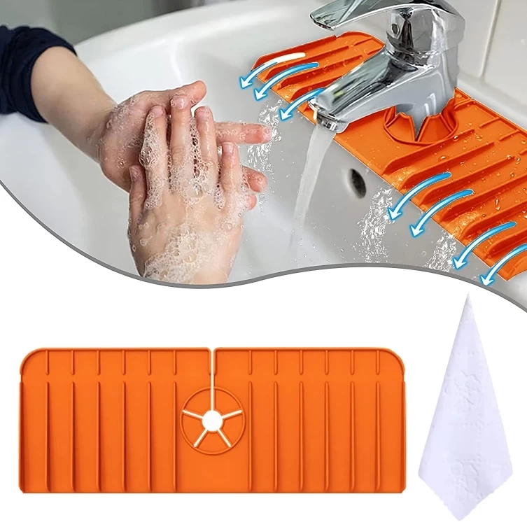 • سهل التنظيف والتفكيك ، خفيف ومريح ، لا حاجة لتنظيف كونترتوب الحوض بعد كل استخدام للوسادة المقاومة للماء للصنبور.
