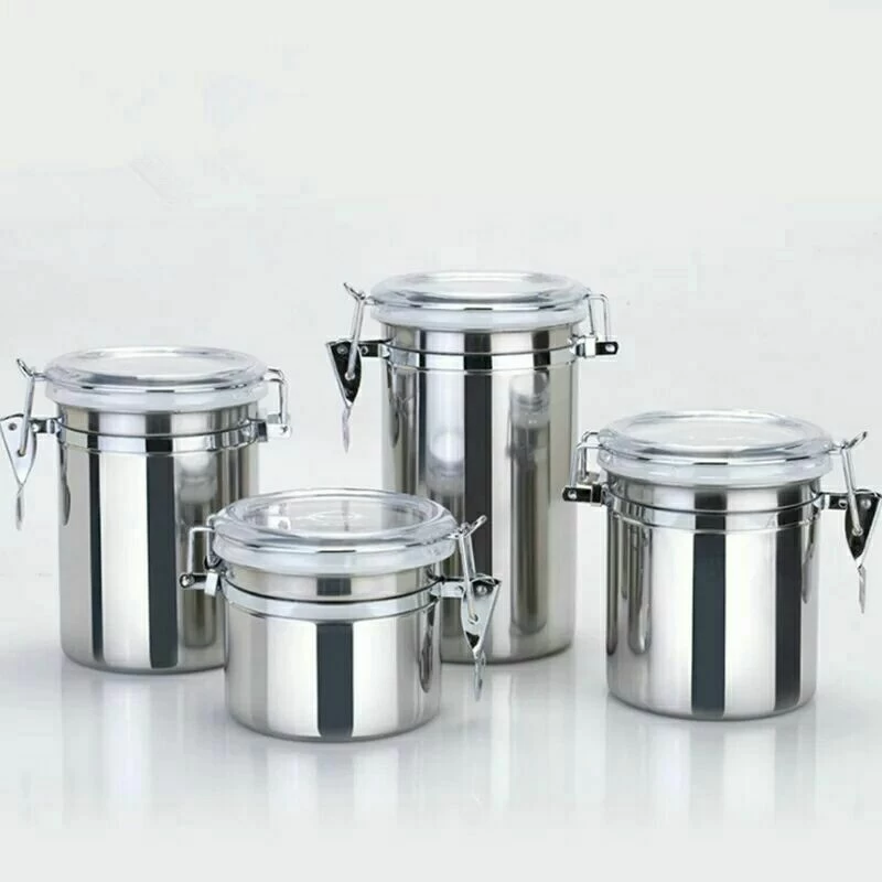 طقم برطمان التوابل استانلس ستيل بالغطاء، 4 قطع - فضى