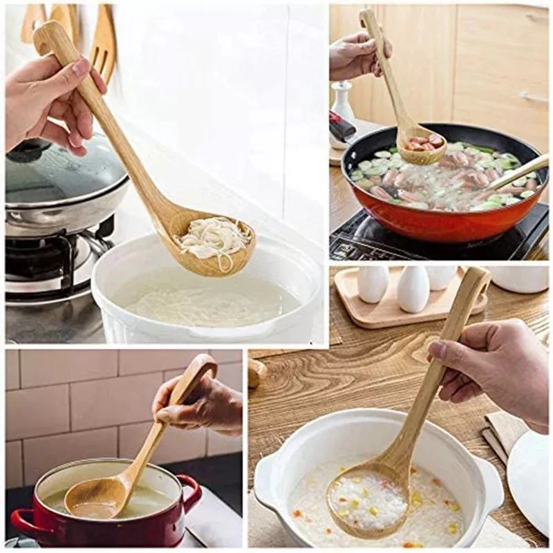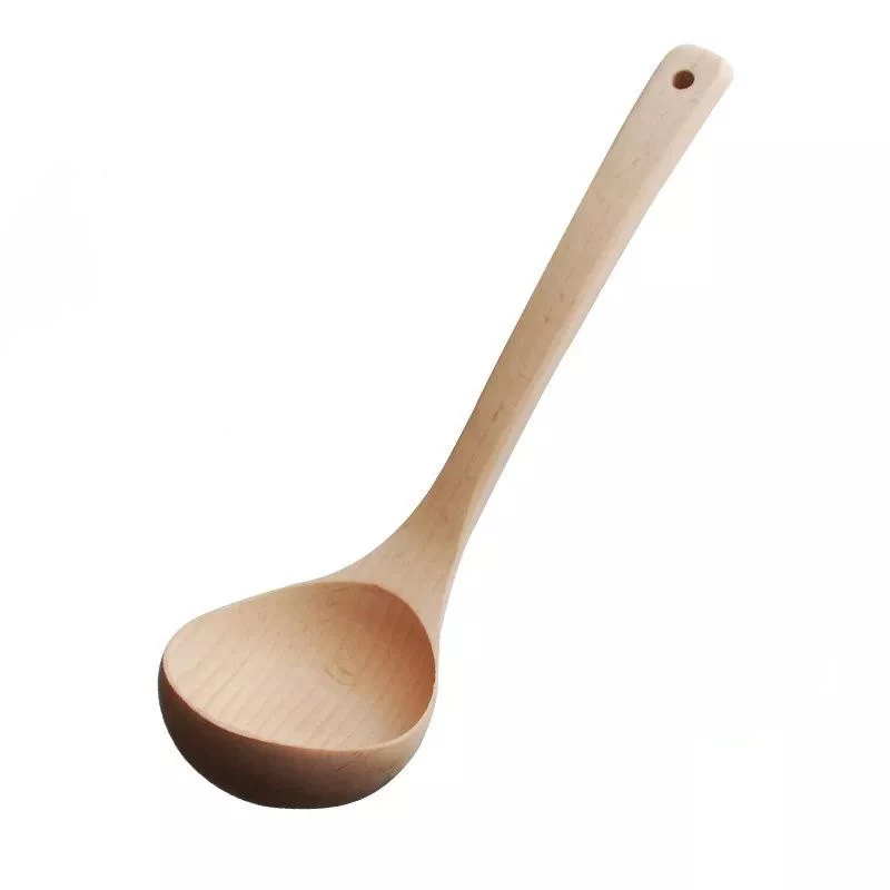 مغرفة شوربة خشبية، مقاس 25 - بيج